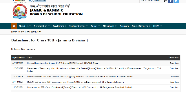 How to Download JKBOSE Class 10th Date Sheet 2025?