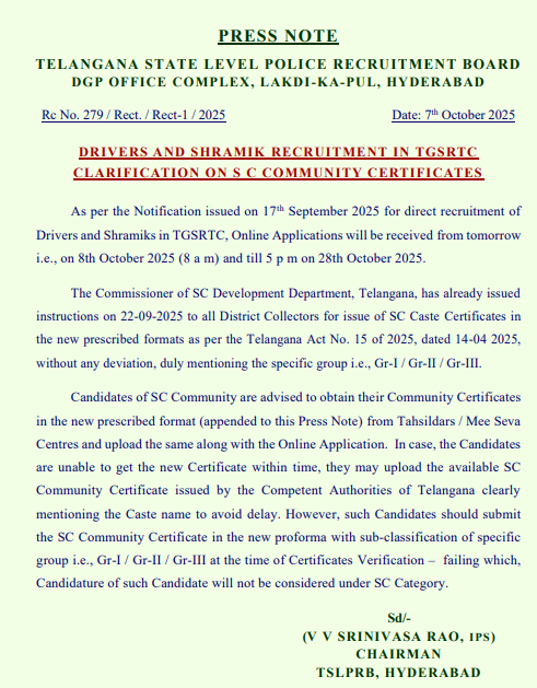 TSLPRB’s latest recruitment for 1,743 Driver and Shramik posts marks a turning point for job seekers in Telangana, especially 10th pass candidates aiming for stable government jobs. By streamlining the online application and offering robust salaries and benefits, the Telangana government provides an accessible career gateway.